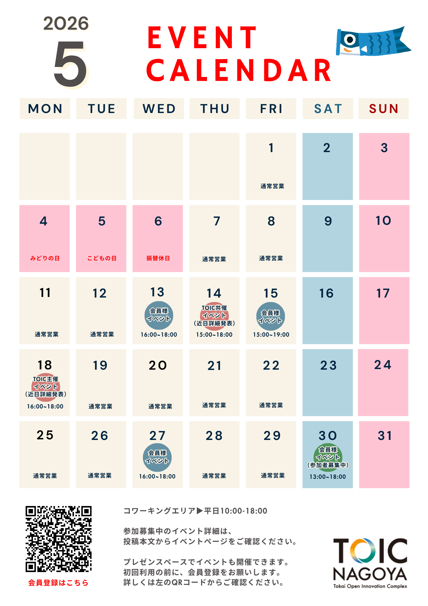 5月のイベントカレンダーをお知らせします!🎏